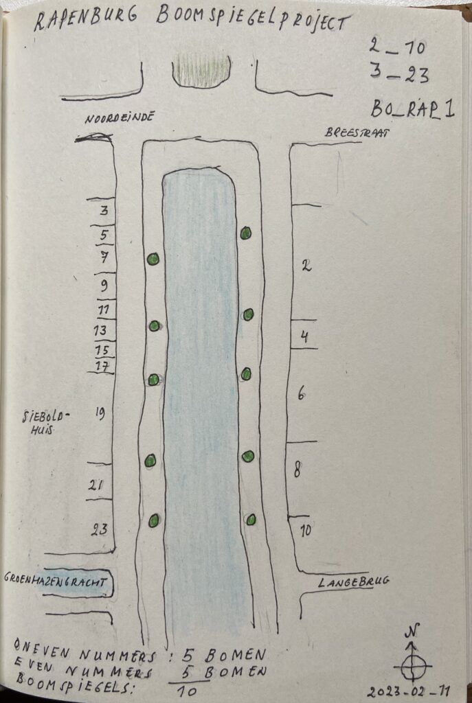 Begin dit jaar opperde ik het plan om in 2023 vijftig boomspiegels langs het Rapenburg in Leiden te willen beplanten. Het gaat om beide zijden van deze gracht vanaf het Noordeinde/Breestraat tot aan de Nonnensteeg/Kloksteeg (Nonnenbrug). Inmiddels is het vrijwel zeker dat de aanplant op zaterdag 7 oktober 2023 uitgevoerd gaat worden: in totaal circa 750 planten.