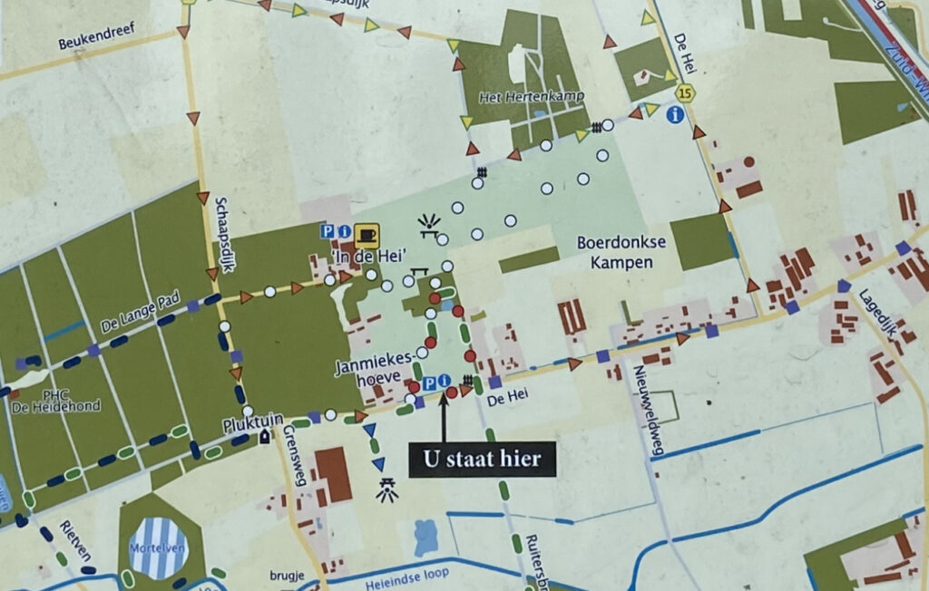 Als ik later die middag door het gebied heenloop valt mij op hoeveel zangvogels er foerageren, alsook een fazant, groene specht. Een marterachtige schiet over een van de graspaden voorbij. Het is dat de 249 legkippen tijdens het bezoek in juli 2023 niet in de percelen mochten rondscharrelen vanwege de vogelgriep, anders zou de rondwandeling ongetwijfeld een nog levender karakter hebben gehad.